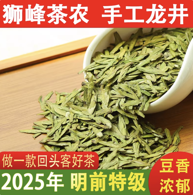 龙井茶2025年新茶杭州西湖贡狮龙井茶浓香豆型香绿茶春茶明前特级